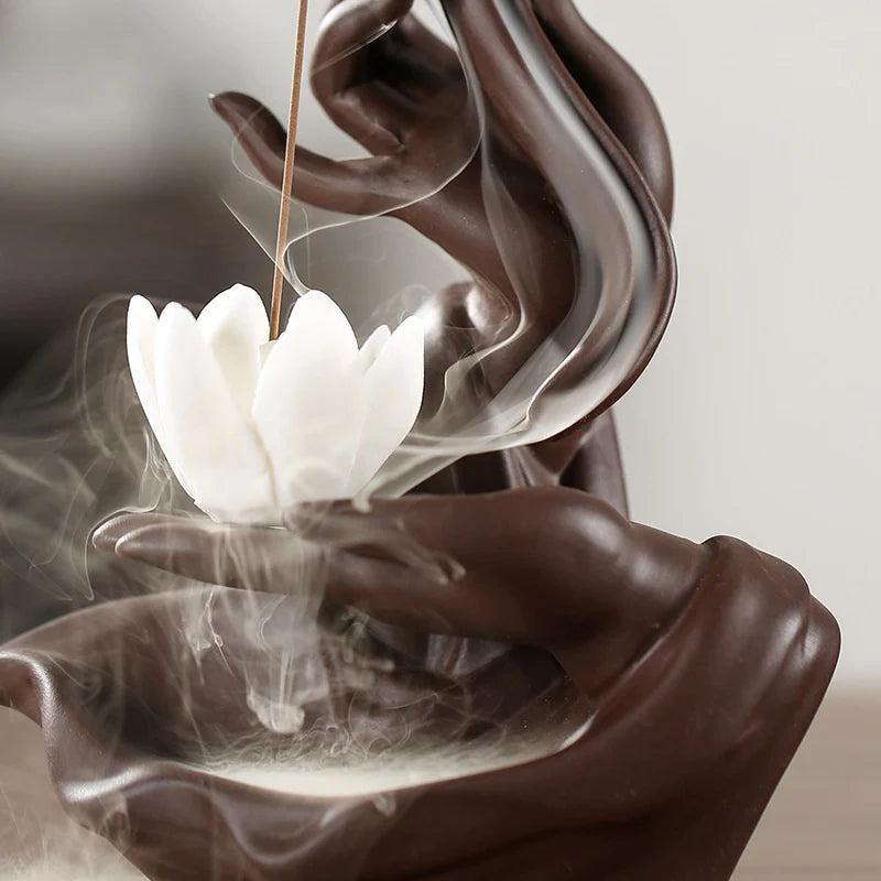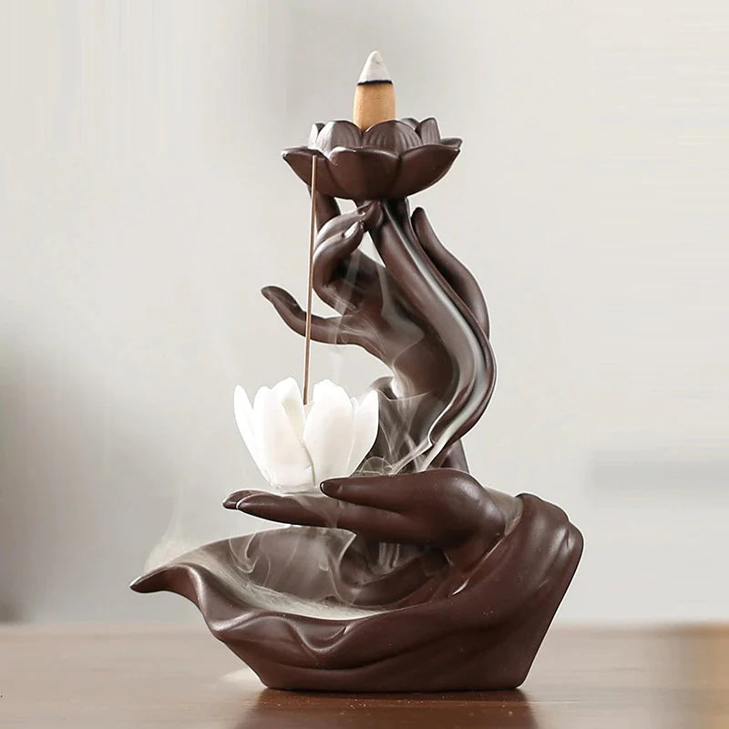 Buddha Hand Lotus Backflow Incense Burner LED lamp